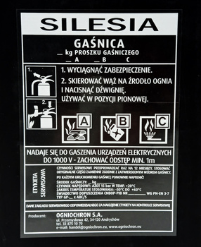 - Etykiety Silesia (uniwersalne): Idealne do popularnych gaśnic proszkowych GP4x i GP6x. Zawierają czytelne piktogramy użycia.
