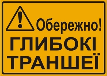 Znak Uwaga! Głębokie wykopy (w języku ukraińskim - Обережно! Глибокі траншеї) na płycie HIPS (319-03U)