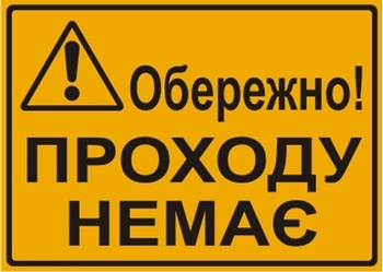 Znak Uwaga! Przejścia nie ma (w języku ukraińskim - Обережно! Проходу немає) na płycie HIPS (319-01U)