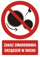 Znak zakaz smarowania urządzeń w ruchu na Folii Samoprzylepnej (GC026)