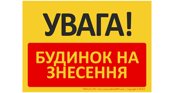 Znak bhp tablica UWAGA! Teren budowy wstęp wzbroniony w języku ukraińskim (T413UA)