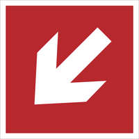 Znak kierunek do miejsca rozmieszczenia sprzętu pożarniczego (strzałka ukośna) (208)