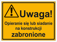 Znak uwaga opieranie się lub siadanie na konstrukcji zabronione na płycie HIPS (319-39)