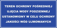 Znak Teren ochrony pośredniej ujęcia wody podziemnej ustanowiony w celu ochrony jakości wód ujmowanych (JE004)