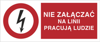 Znak Nie załączać na linii pracują ludzie na Folii Samoprzylepnej (630-03b)