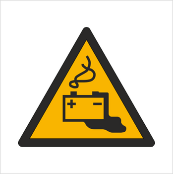 Znak ostrzeżenie przed ładowaniem baterii na płycie PCV (W26) (ISO 7010)