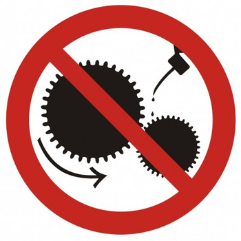 Znak Zakaz smarowania urządzeń w ruchu na Folii Samoprzylepnej (GB004)
