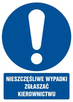 Znak Nieszczęśliwe wypadki zgłaszać kierownikowi na płycie PCV (GL002)