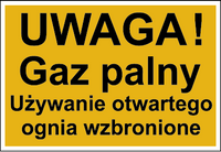 Znak uwaga gaz palny używanie otwartego ognia wzbronione na płycie PCV (825)