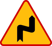 Znak ostrzegawczy METALOWY Dwa niebezpieczne zakręty- pierwszy w lewo (A4)