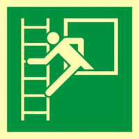 Znak okno ewakuacyjne z drabiną ewakuacyjną na Folii Świecącej (AAE016)