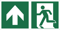 Znak podwieszany łączony wyjście ewakuacyjne ze strzałką LL+PP na Płycie Świecącej