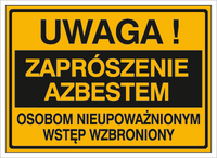 Znak uwaga zaprószenie azbestem osobom nieupoważnionym wstęp wzbroniony na płycie HIPS (319-73)
