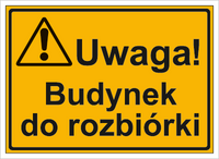 Znak uwaga budynek do rozbiórki na płycie HIPS (319-32)