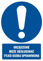 Znak Urządzenie może obsługiwać tylko osoba uprawniona na Folii Samoprzylepnej (GL001)