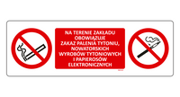 Znak Na terenie zakładu obowiązuje zakaz palenia tytoniu, nowatorskich wyrobów tytoniowych i papierosów elektronicznych na Folii Samoprzylepnej NE010