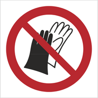Znak zakaz używania rękawic roboczych na płycie PCV (P28) (ISO 7010)