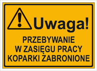 Znak uwaga przebywanie w zasięgu pracy koparki zabronione na płycie HIPS (319-53)