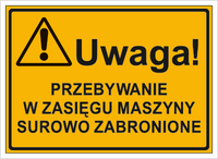 Znak uwaga przebywanie w zasięgu maszyny surowo zabronione na płycie HIPS (319-51)