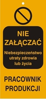 Znak Nie załączać niebezpieczeństwo utraty zdrowia lub życia pracownik produkcji (807-07)