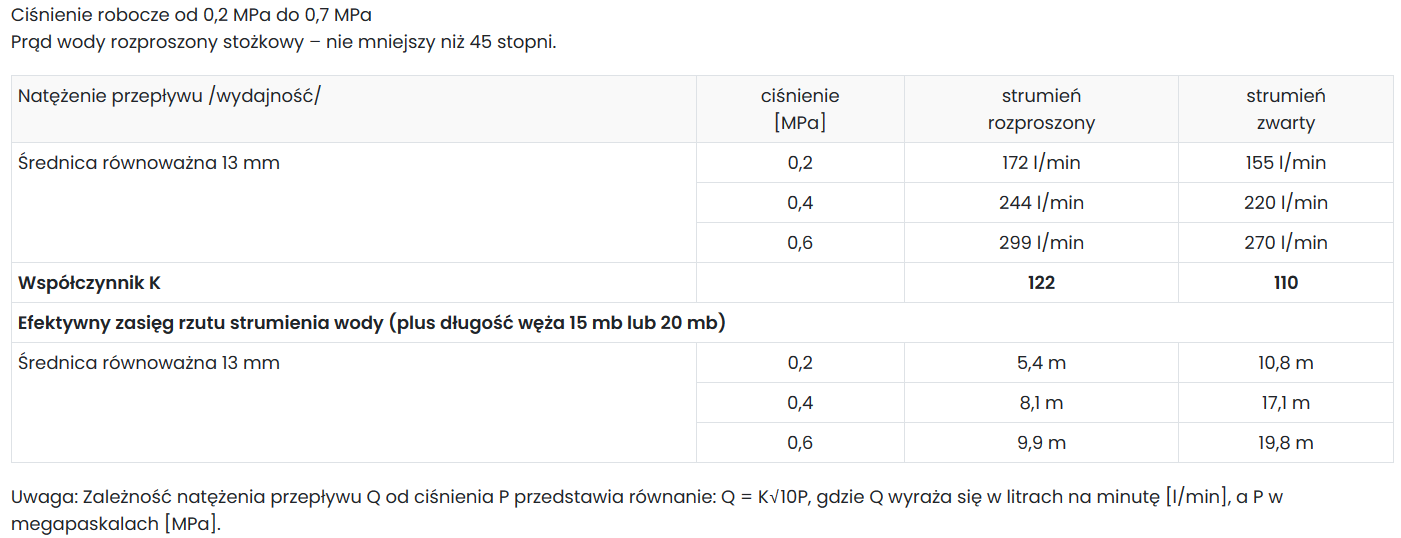 - PRĄDOWNICA HYDRANTOWA: PWh-52 zgodna z normą PN-EN-671-2, na stałe podłączona do węża poprzez zakucie tuleją aluminiową