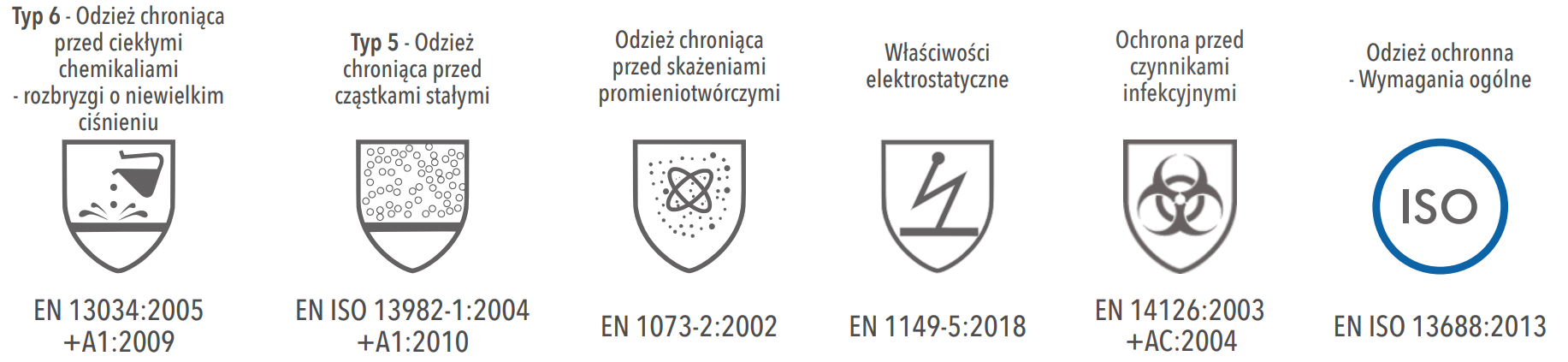- kombinezon klasyfikowany jest jako: Kategoria III, Typ 5,6