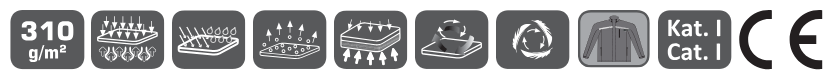 Kurtka wykonana jest z tkaniny typu soft-shell 100% poliester, 310 g/m². Podszewka: mikropolar 150 g/m². Kurtka jest zbudowana z 3 warstw tkaniny soft-shell z membraną TPU. Softshell posiada membranę (5000 mm), oddychająca (3000 g/m²/24h), ekstremalna. Produkt gwarantuje wysoki komfort użytkowania. Materiał, który został zastosowany w kurtce soft-shell zapewnia doskonałą trwałość. Z dodatkowych udogodnień należy kieszeń na telefon komórkowy. Odzież wierzchnia posiada 6 kieszeni (3 zewnętrzne zamykane na suwak i 3 wewnętrzne).