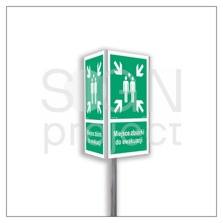 Oznakowanie przestrzenne "Miejsce zbiórki do ewakuacji" znalazło swoje zastosowanie wszędzie tam, gdzie warunki nie pozwalają na zapewnienie dobrej widoczności znaków płaskich.