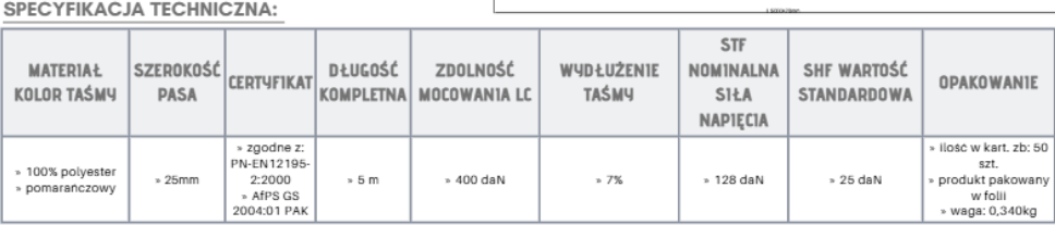 - Zgodny z normami PN-EN12195- 2:2000, AfPS GS 2004:01 PAK