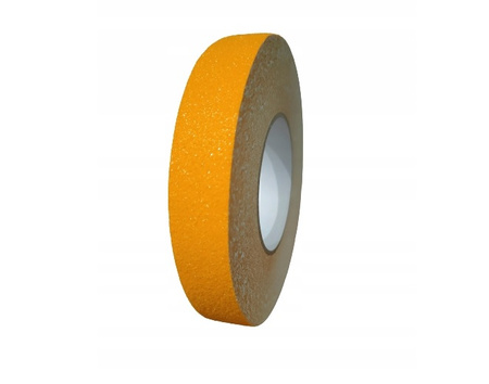 Taśma bhp antypoślizgowa żółta 25mm/18m zmniejsza ryzyko poślizgnięcia się, wykonana jest z materiału antypoślizgowego, trudnościeralnego. Taśmy samoprzylepne bhp na podłogi w kolorze żółtym pod całą swoją powierzchnią posiada taśmę samoprzylepną, dzięki temu jest łatwa w montażu. Zapewnia to: pewność połączenia z powierzchnią, nie podwijanie się brzegów i brak konieczności dodatkowego podklejania brzegów.