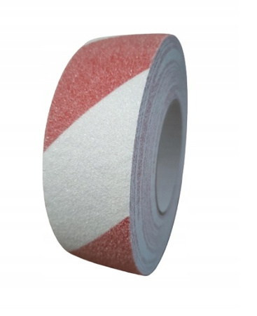 Taśma antypoślizgowa bhp biało-czerwona 50mm/18m