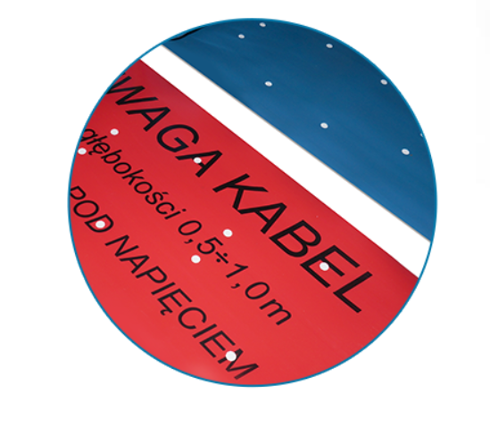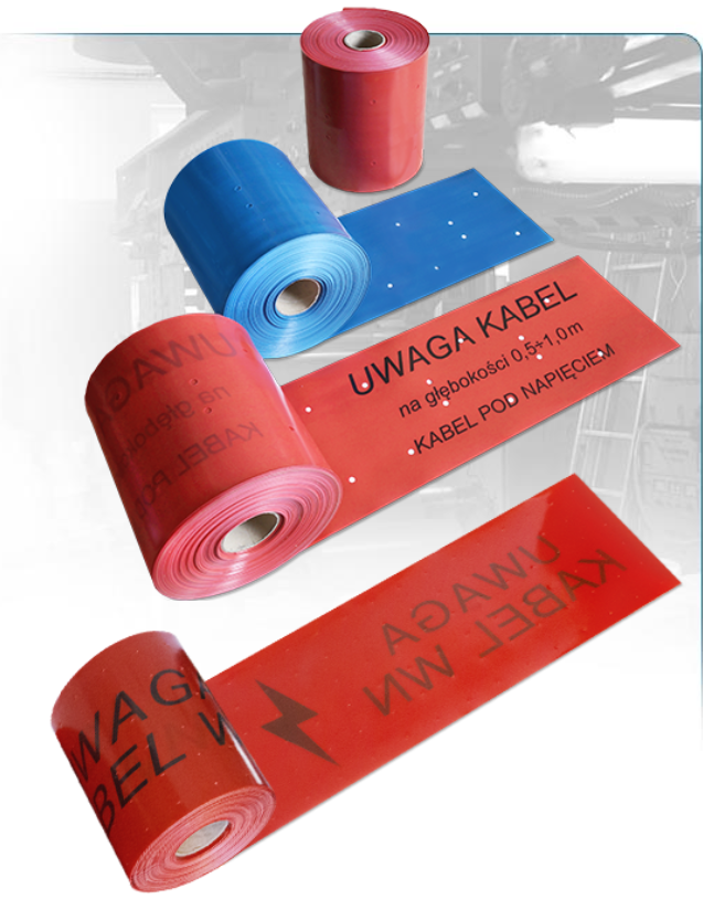 Taśma oznaczeniowa inaczej nazywana folią kablową służy do znakowania podziemnych tras kabli wysokiego napięcia. Jest to taśma układana w wykopie na wysokości 25-30cm nad powierzchnią zewnętrzną kabla lub rury osłonowej, w której ten kabel się znajduje na całej długości wykopu.