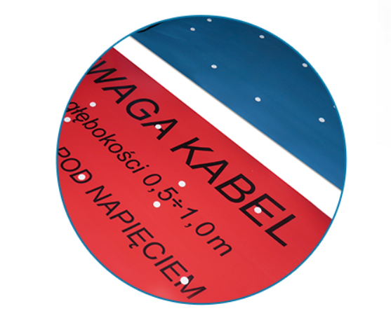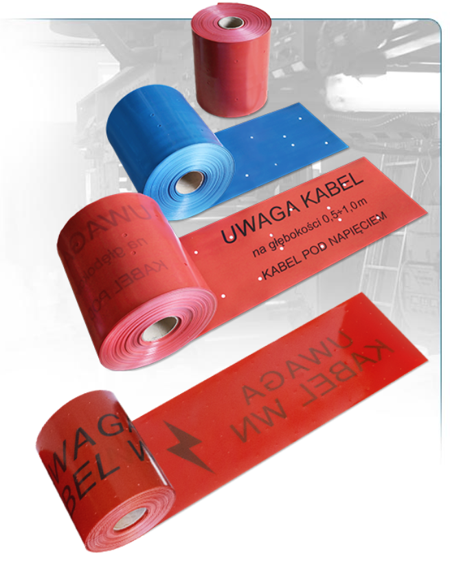 Taśma oznaczeniowa inaczej nazywana folią kablową służy do znakowania podziemnych tras kabli wysokiego napięcia. Jest to taśma układana w wykopie na wysokości 25-30cm nad powierzchnią zewnętrzną kabla lub rury osłonowej, w której ten kabel się znajduje na całej długości wykopu.