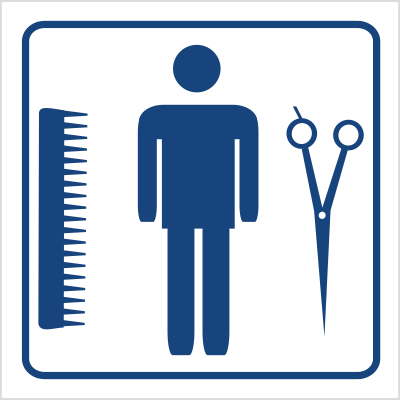 - Oznakowanie wejścia do salonu fryzjerskiego męskiego