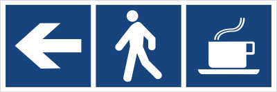 - oznaczenie kierunku do kawiarni w budynkach biurowych i usługowych