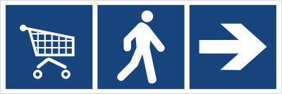 Wyraźny piktogram z kierunkiem w prawo zapewnia czytelne prowadzenie klientów lub pracowników do miejsca odkładania bądź pobierania koszyków.