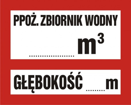 Znak ppoż. zbiornik wody...m³, głębokość zbiornika ...m (BC117) na płycie PCV