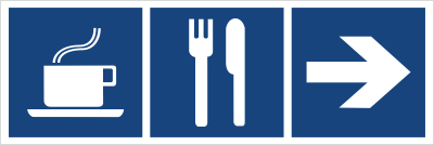 - Rodzaj znaku: restauracja kawiarnia, kierunek w prawo