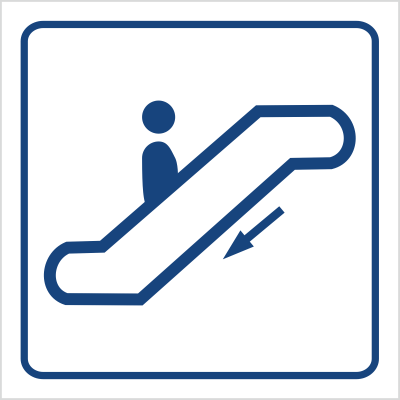 - czytelne oznaczenie kierunku – schody ruchome w dół, zrozumiałe dla użytkowników