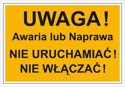Znak uwaga awaria lub naprawa – nie uruchamiać, nie włączać na płycie PCV (854)