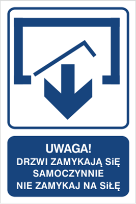 Znak Uwaga! Drzwi zamykają się samoczynnie. Nie zamykaj na siłę (drzwi jednoskrzydłowe)