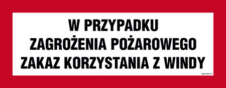Znak „W przypadku zagrożenia pożarowego zakaz korzystania z windy” na płycie PCV (BC128)