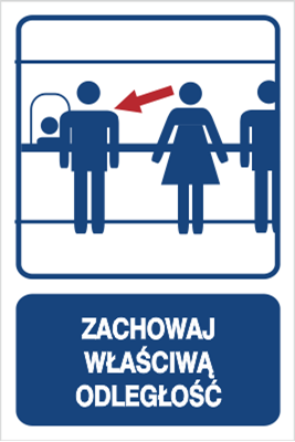 - czytelny komunikat przypominający o konieczności zachowania właściwej odległości
