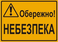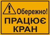 Znak Uwaga! Zasięg pracy dźwigu (w języku ukraińskim - Обережно! Працює кран) na płycie HIPS (319-87U)