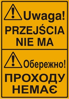 Znak Uwaga! Przejścia nie ma (tablica w języku polskim i ukraińskim) na płycie HIPS (319-1U)
