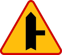 Znak ostrzegawczy METALOWY Skrzyżowanie z drogą podporządkowaną występującą po lewej stronie (A6c)