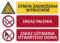 Znak Strefa zagrożenia wybuchem Zakaz palenie i używania otwartego ognia (T014)
