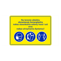 Oznaczenie nakaz stosowania osłony twarzy i dystansu społecznego