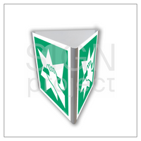 Znak AE806 Kierunek drogi ewakuacyjnej skos świecący (3D dościenny)
