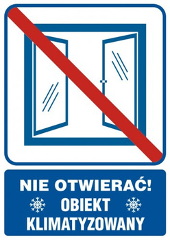 Znak Nie otwierać obiekt klimatyzowany na Folii Samoprzylepnej (RB506)